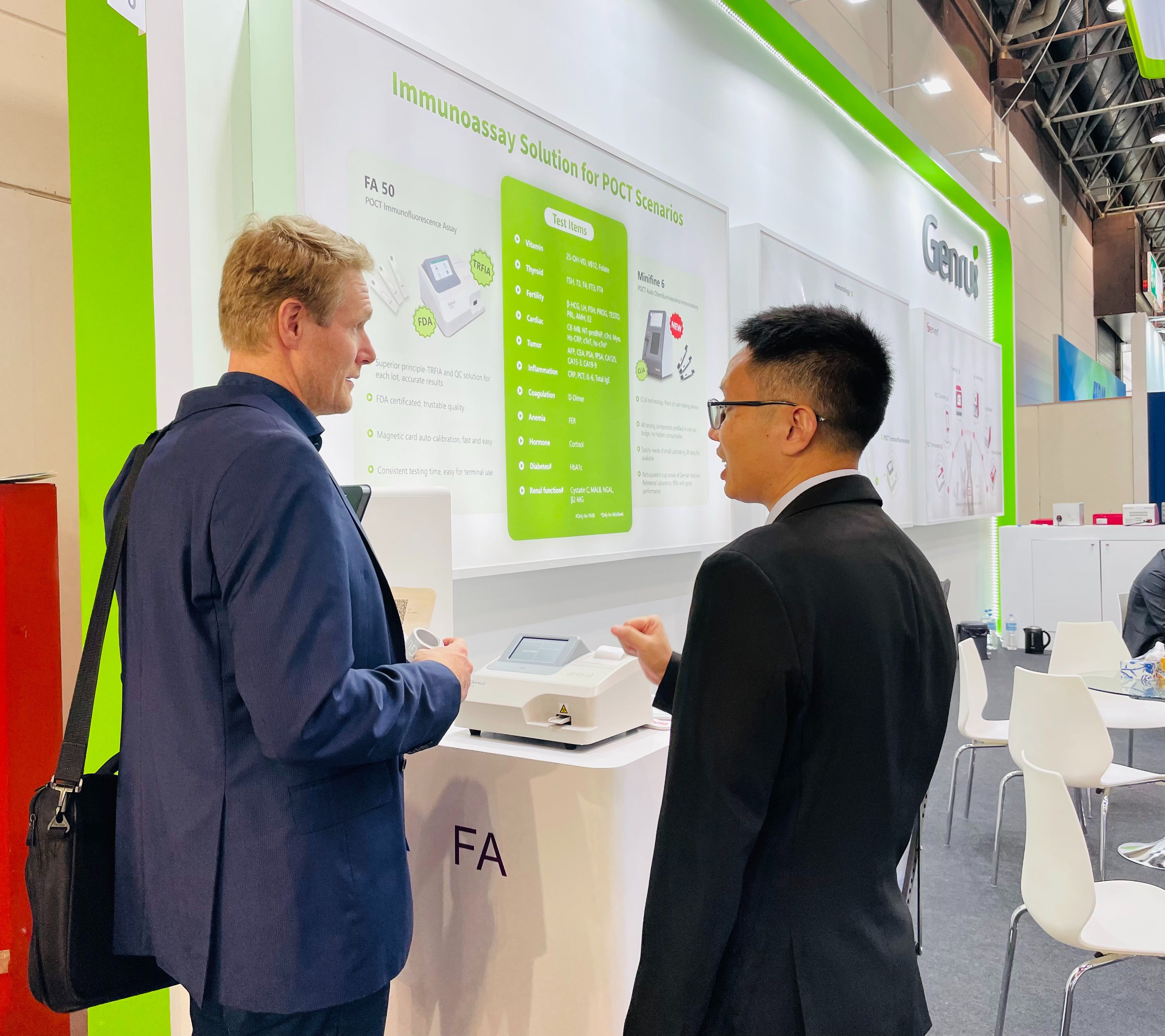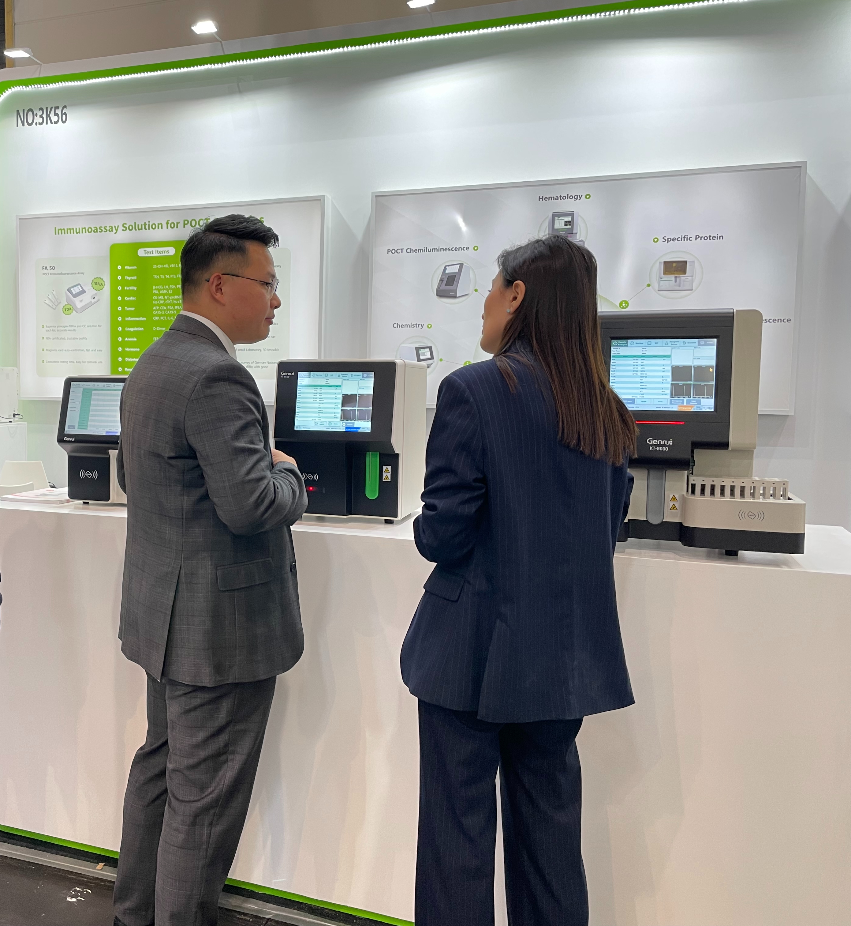 作为一家专业从事临床检验仪器和试剂研发、生产、销售及服务的高科技企业,锦瑞生物此次闪耀亮相德国杜塞尔多夫会展中心的3K56展位,全面展示了包括血球、生化、免疫、POCT和兽用产品等领域中最受欢迎的产品,吸引了众多观众驻足参观交流。